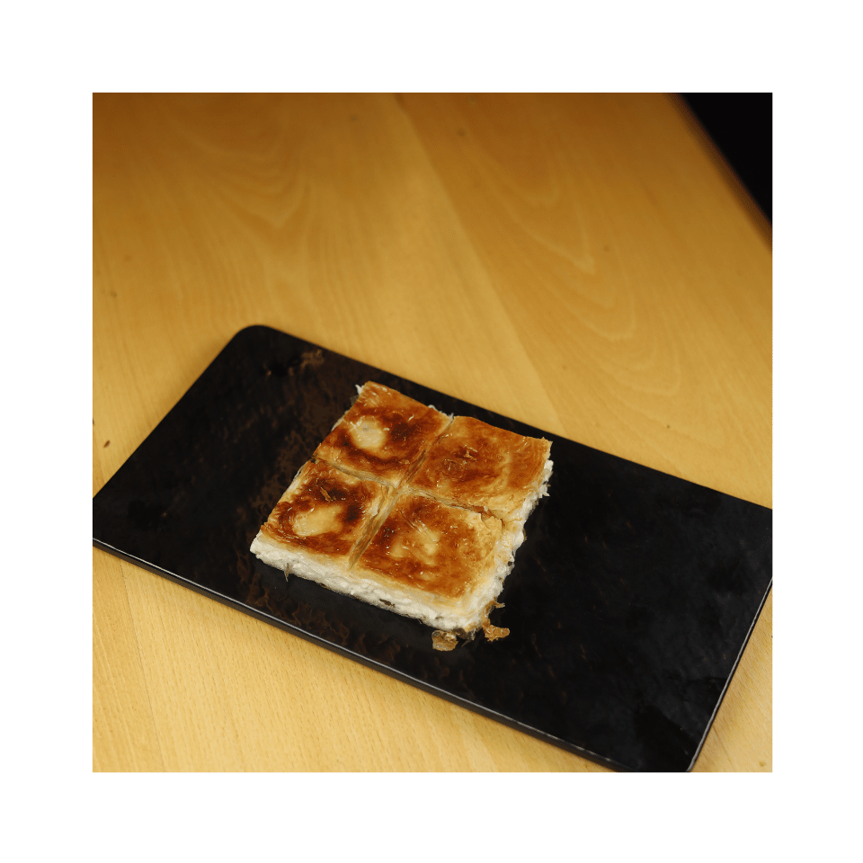 Kat kat açılmış el yufkası, taze beyaz peynir ve maydanoz ile yapılır.