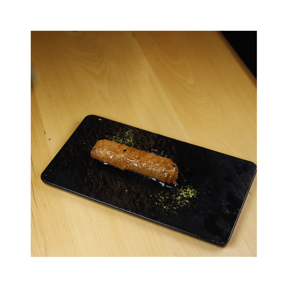 İnce tel kadayıf, özel fıstık dolgusu ve sade yağ ile yapılır.