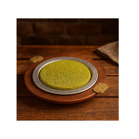 İnce kıyılmış kadayıf, Antep fıstığı ve sade yağ ile yapılır.