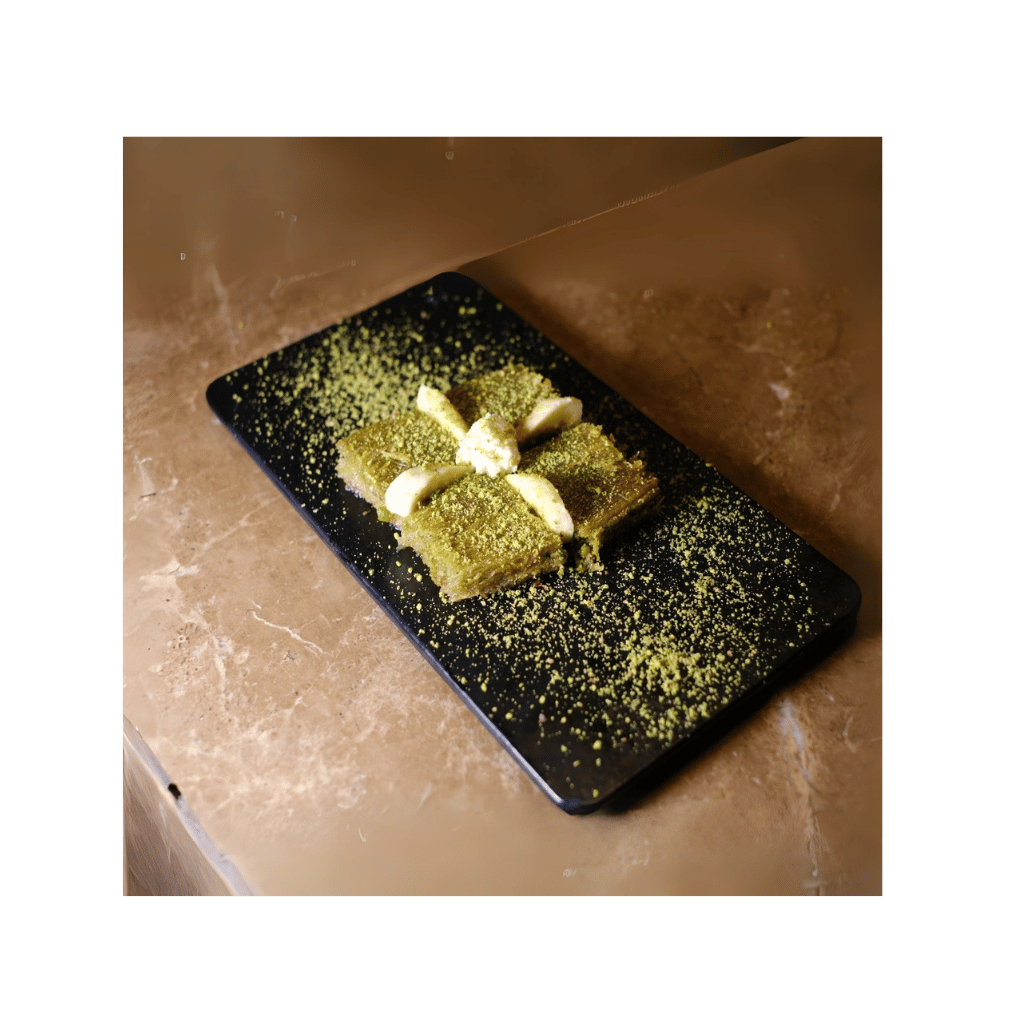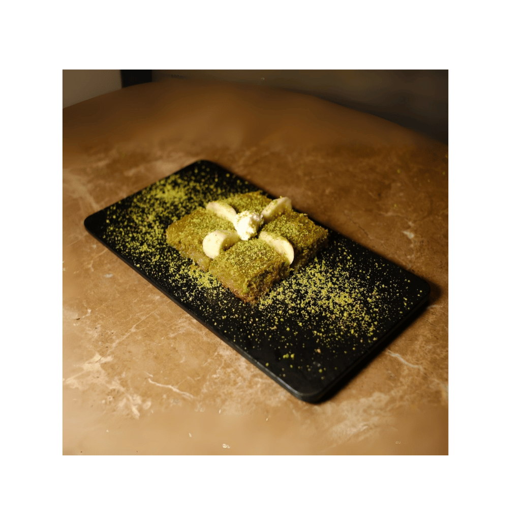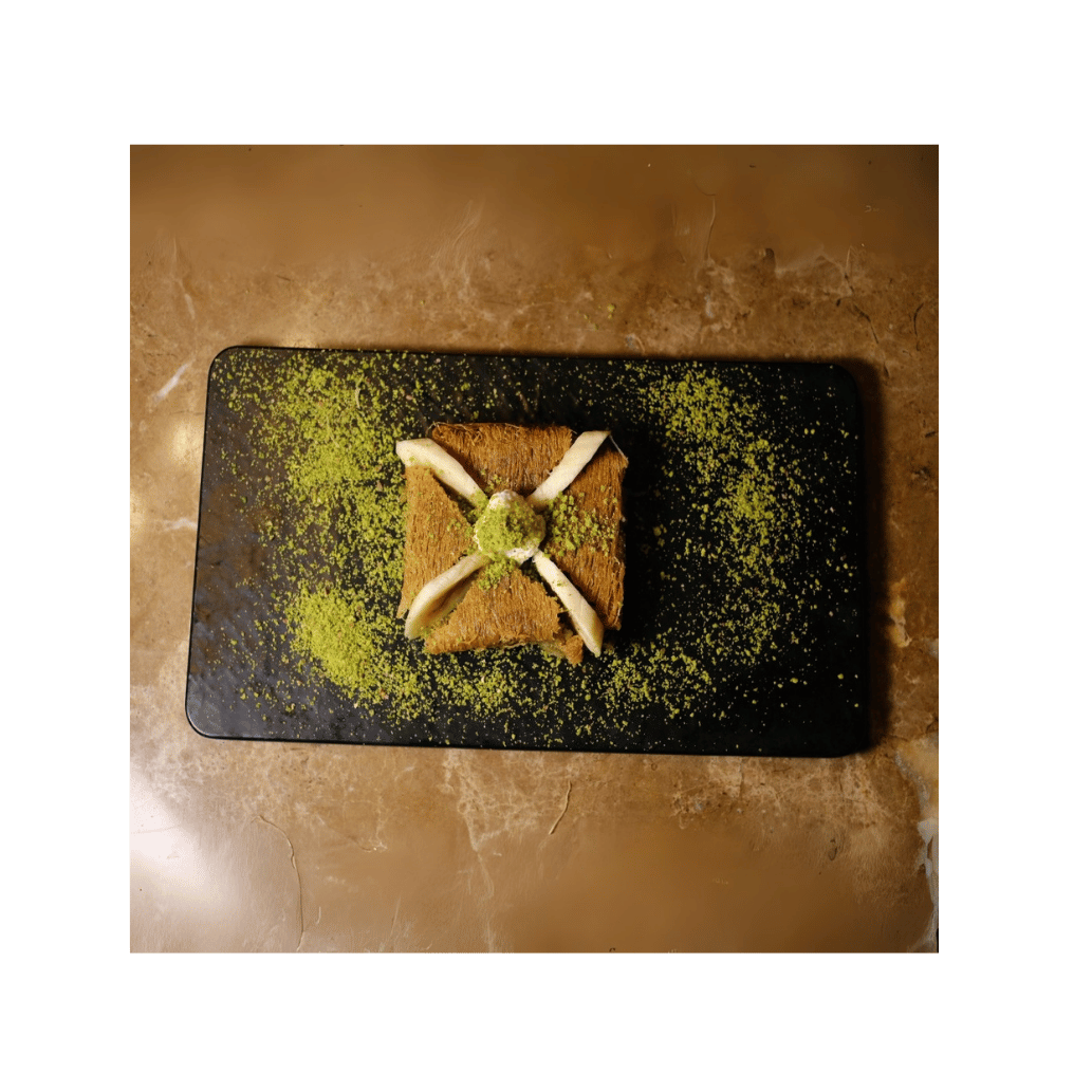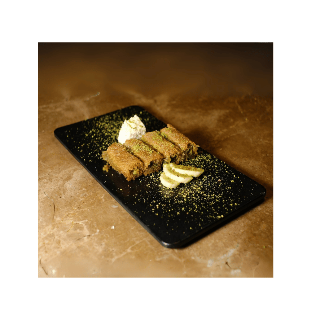 İçinde fıstık ve kaymak bulunan, üstü çıtır kadayıfla kaplı özel karışım ile yapılır.